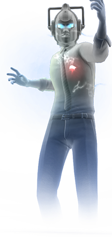 These ghosts can give other Sims electric shocks (not directly deadly}, delete (dies of failed Upgrade) and convert (immediately turns into ghost) them. A ghost with a failed Upgrade is created by pushing the red button on the Nethersphere or by being deleted by another Half-Cyberman-Ghos.