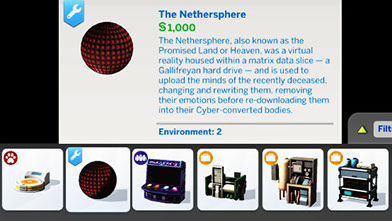 Replace the Grim Reaper with the sassy Time Lady Missy, become a "Half-Upgraded Ghost" and convert other Sims. You can also "delete" Sims. With the Emotional Control Skill your half-upgraded Sim can implant an Emotional Inhibitor on normal Sims and suppress/modify emotions. With the new object "Nethersphere" you can communicate with victims of Missys evil plan.